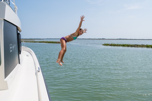 Le 2 cabine sono dislocate a prua e a poppa, lontane tra di loro e intervallate dalla sala da pranzo; questo garantisce una privacy assoluta, e per questo la barca è perfetta sia per 2 coppie di amici che per una famiglia con 2 figli. In caso di necessità, anche il divano della dinette può essere convertito in un letto doppio.